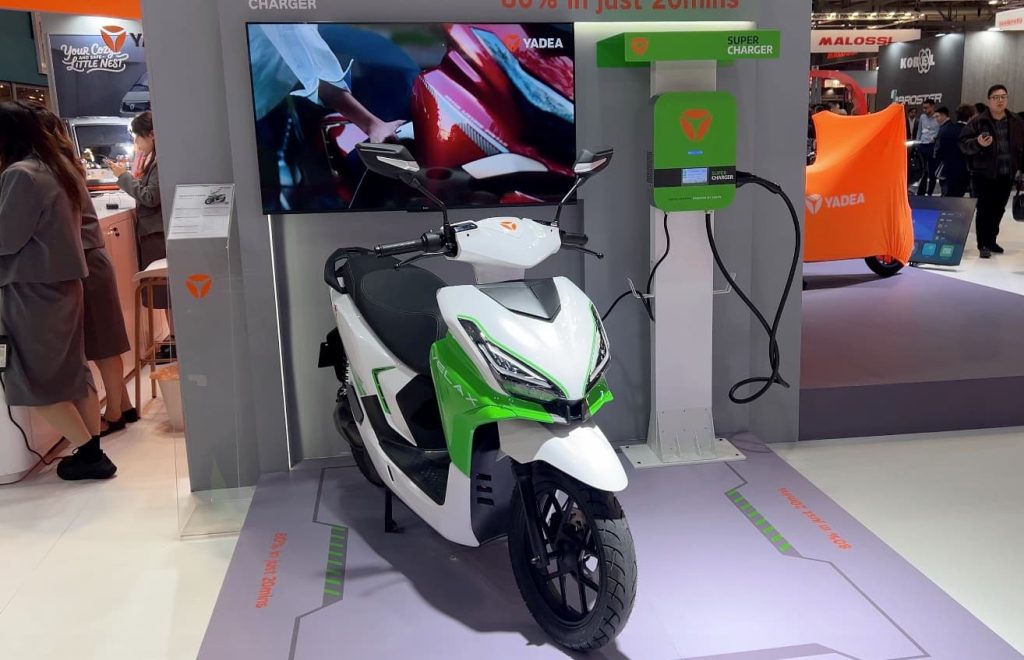В центре внимания на стенде Yadea было представление нового электроскутера Velax U, последней версии популярной платформы Velax компании. Когда занавес опустился, толпа нетерпеливых посетителей впервые увидела стильный скутер, оснащенный двумя съемными аккумуляторами общей емкостью 4 кВт⋅ч и двигателем пиковой мощностью 4,9 кВт.