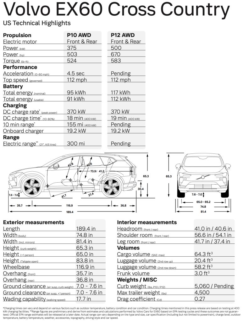 Хотя полного breakdowns цен пока нет, Volvo заявляет, что автомобиль «действительно хорошо оснащен по цене около 60 000 долларов» и что комплектация P10 AWD Plus включает: